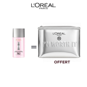 Pack L’Oréal Glycolic Bright avec protection UV SPF50+ et coffret Gua Sha pour un teint lumineux et protégé.