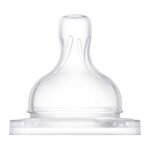 Sa texture rainurée évite l’écrasement de la tétine, et réduit les interruptions de tétée pour plus de confort.