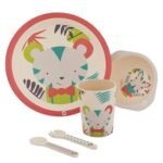 Bebe Confort – Coffret repas en Bambou (Assiette, bol, verre, cuillère, fourchette) – Jungle Vibes (18M +)