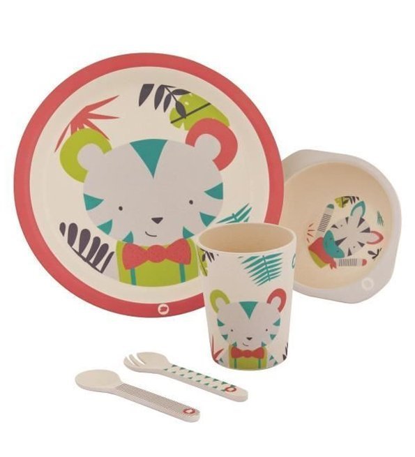 Bebe Confort – Coffret repas en Bambou (Assiette, bol, verre, cuillère, fourchette) – Jungle Vibes (18M +)