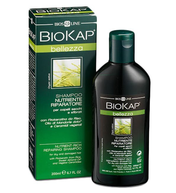 Le shampooing nourrissant réparateur Biokap, à base de phytokératine, d’huile d’amande douce et de céramides végétales, convient pour les cheveux secs et abîmés.Ce shampooing nourrissant convient pour un usage quotidien. Ce shampooing Biokap contient :De la Phytokératine de Riz, une « kératine végétale » spécifique qui crée une barrière de protection naturelle et restructurante sur la fibre capillaire.