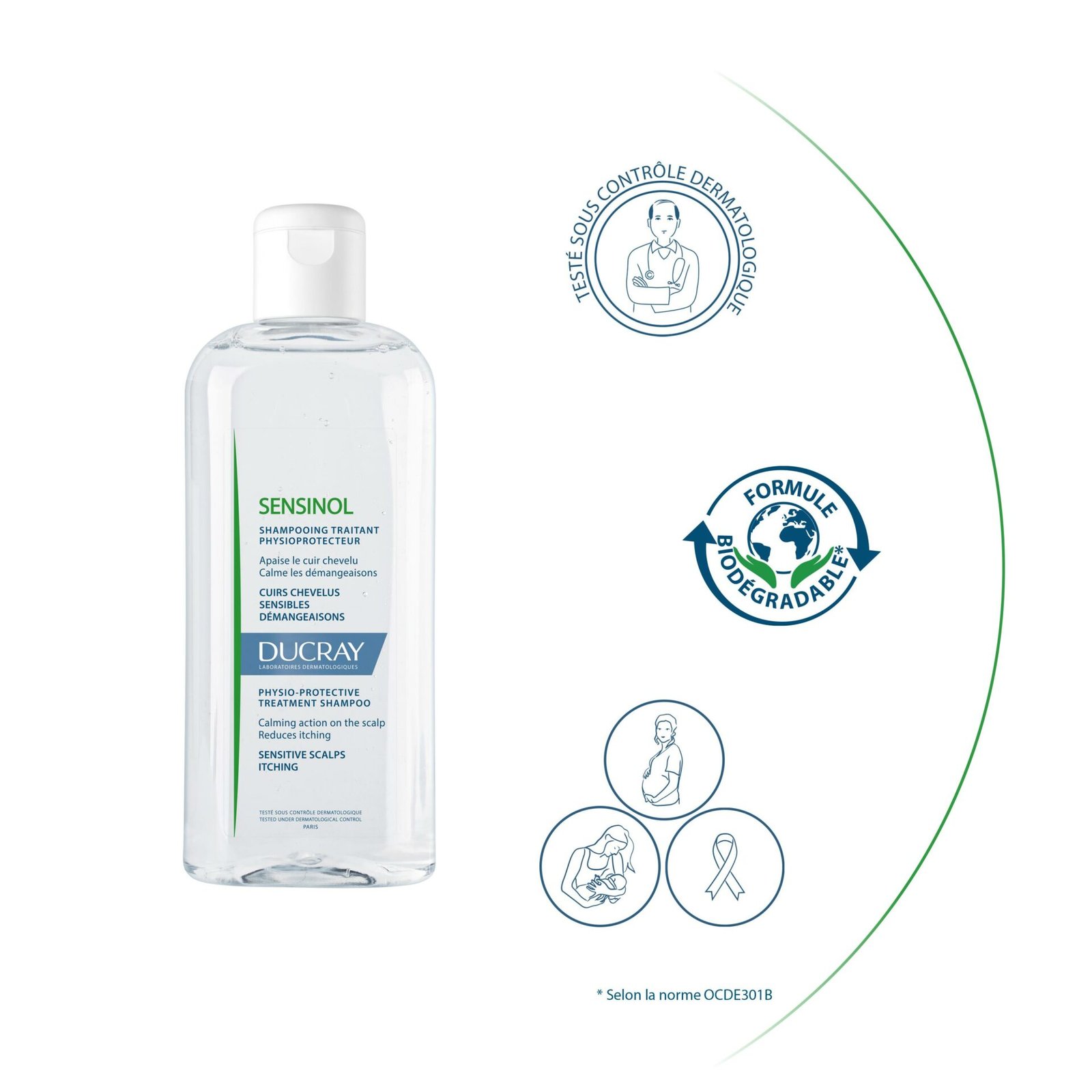 • Le shampooing physioprotecteur SENSINOL est un shampooing traitant anti-démangeaisons à destination des cuirs chevelus sensibles