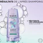 Elseve Hyaluron Repulp Après Shampoing Démêlant Hydratation 72H 200 ml est conçu pour les cheveux déshydratés et fatigués