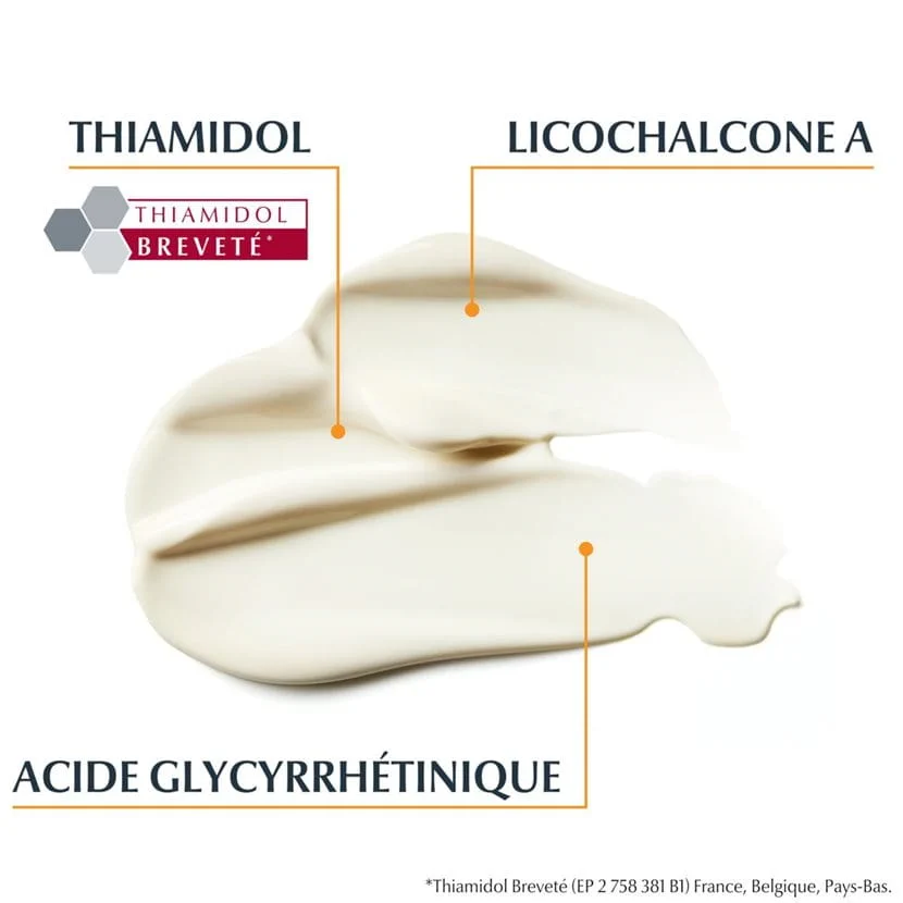 La formule est enrichie en Acide Glycyrrhétinique, qui soutient le mécanisme de réparation de l’ADN de la peau pour réparer les dommages causés par l’exposition au soleil et réduire le vieillissement prématuré. Elle contient également du Thiamidol, qui agit à la source de l’hyperpigmentation, aidant ainsi à réduire les taches sombres et uniformiser le teint. Une utilisation régulière aide à prévenir leur réapparition.
