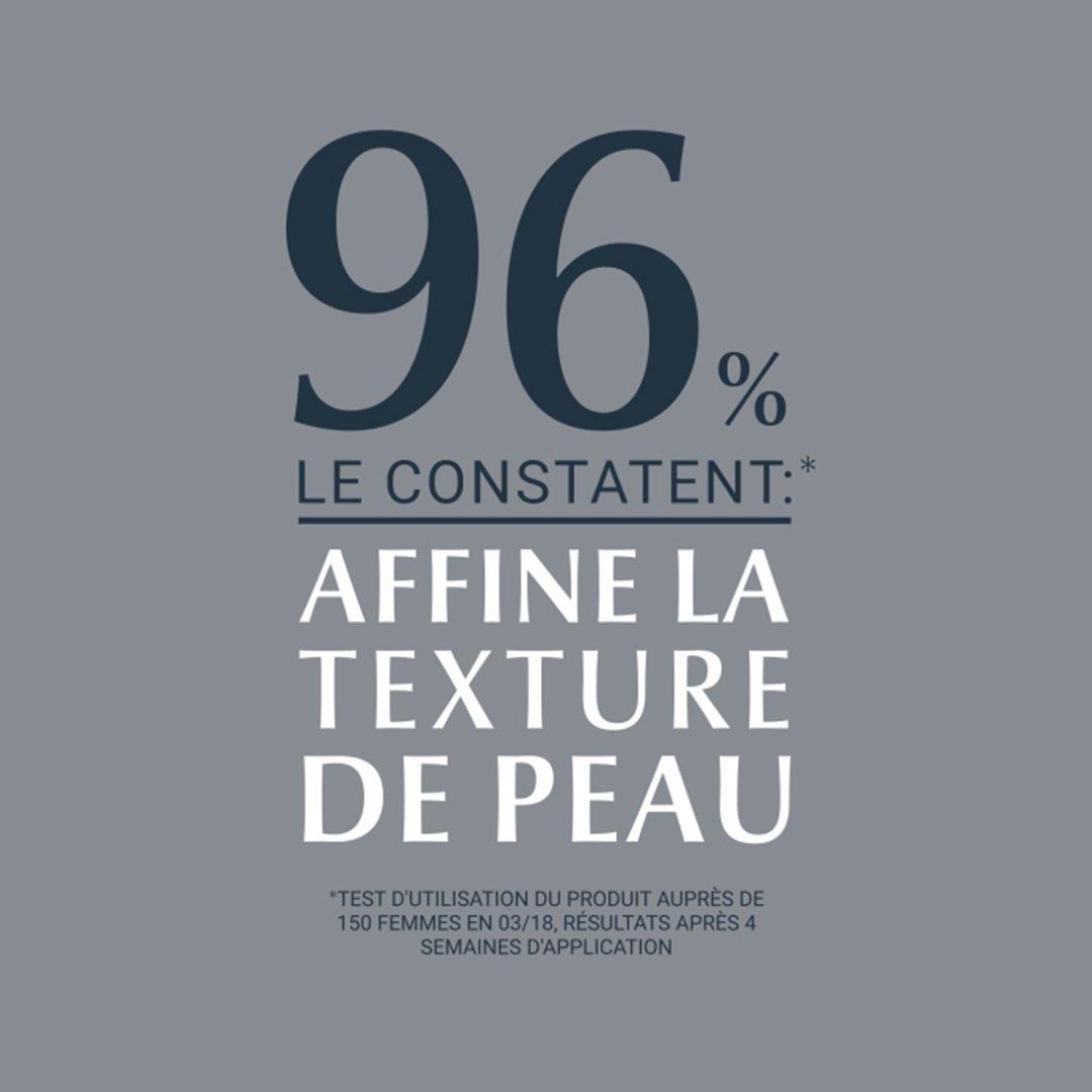 – Une peau lissée et lumineuse : L’émulsion crémeuse contient un complexe AHA (alpha-hydroxy-acide) efficace et de la Glycine Saponine. Les AHA, dont beaucoup sont connus sous le nom d’acides de fruits, exfolient la peau tandis que la Glycine Saponine favorise la production d’Acide Hyaluronique dans les cellules épidermiques où naissent les rides profondes.