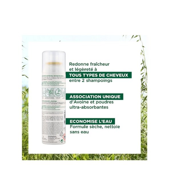 « – Nettoyant : la formule extra-douce sans rinçage au lait d’Avoine assainit le cuir chevelu sans agresser et élimine l’excès de sébum en 2 minutes. – Texturisant : en quelques vaporisations, il redonne volume, matière et texture aux cheveux sans avoir besoin de les mouiller. – Coiffant : véritable geste fraîcheur et secret de beauté, le Shampoing sec Avoine facilite la réalisation de toutes les coiffures et favorise leur tenue. »