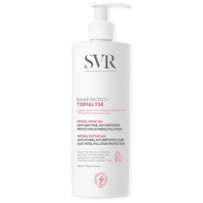 TOPIALYSE BAUME PROTECT+, c’est le premier soin enrichi en Céramides AD(1) brevetés qui apporte une protection face aux agressions extérieures (acariens, pollution…) qui peuvent aggraver les irritations et les crises de grattages. Ce baume apaise immédiatement et durablement les sensations de démangeaisons pour une peau apaisée, protégée et réparée durablement. Sa texture nourrissante relipidante fond et laisse un film protecteur à la surface de la peau avec un effet anti-adhésion des microparticules de pollution (PM 2.5)(2) . Non gras et non collant, l’habillage se fait directement après l’application !