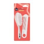 L’ensemble brosse et peigne pour bébé Tommee Tippee dès la naissance et est sans BPA.