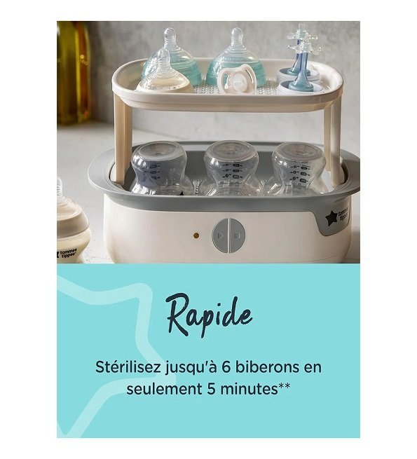 Tommee Tippee Stérilisateur Électrique à Vapeur Super Steam – Blanc :