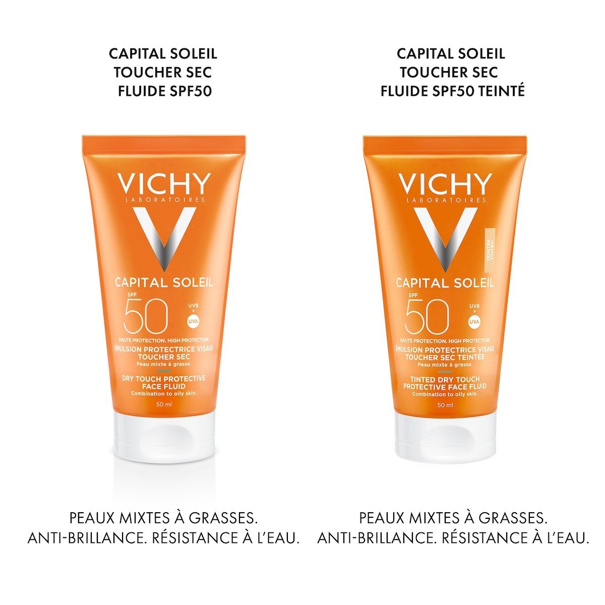 Vichy Capital Soleil Émulsion Anti-Brillance Toucher Sec SPF50 Peau Sensible Mixte à Grasse | 50ml = Minerale 89 10ml Offert