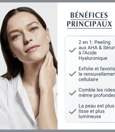 Le Peeling & Sérum Nuit HYALURON-FILLER + 3x EFFECT exfolie et affine la texture de la peau, favorise le renouvellement cellulaire et comble les rides, même les plus profondes. Sa forumle triple effet :
